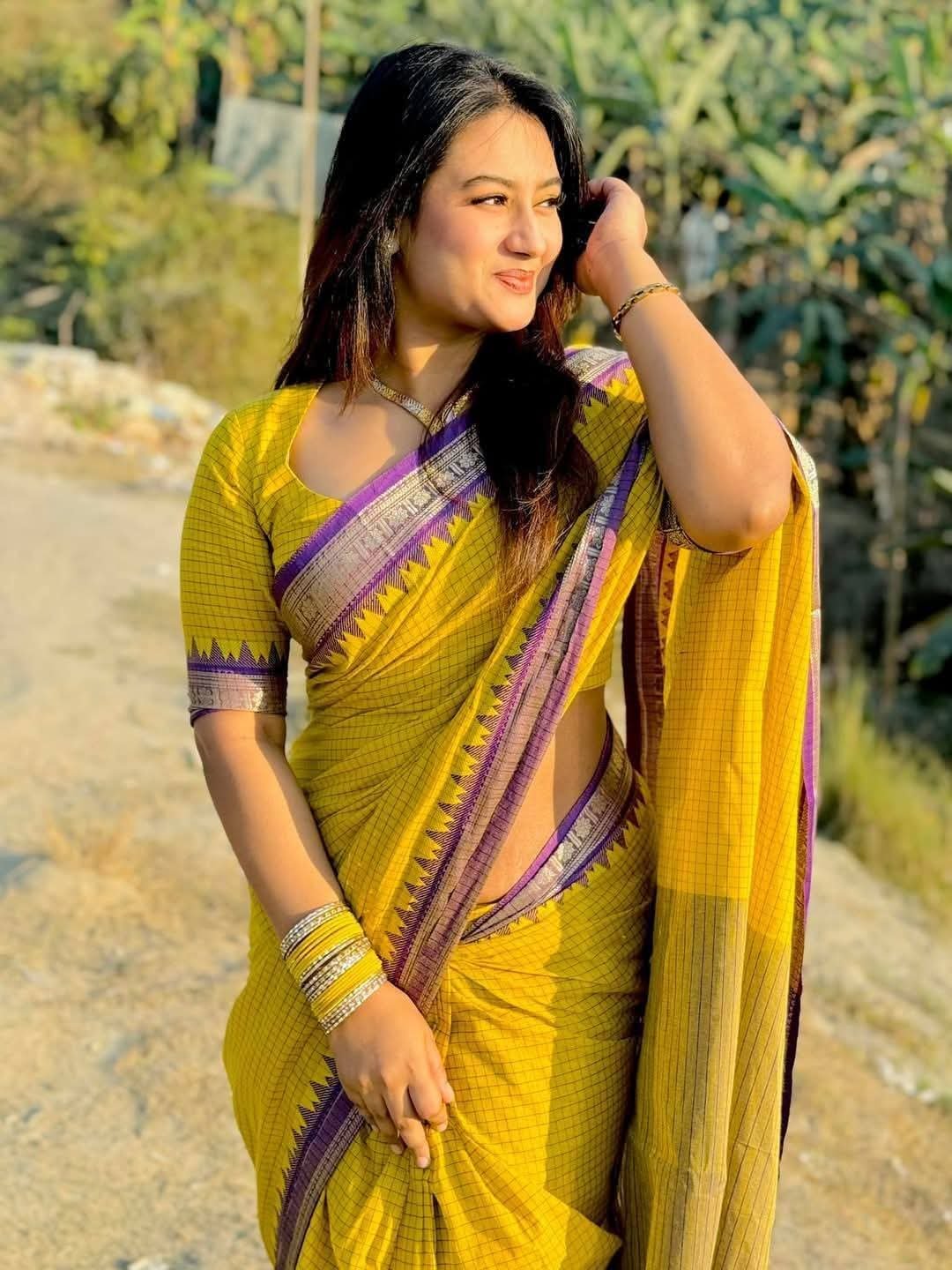 শাড়ির লাষ্ট অংশ থেকে ব্লাউজ কেটে নিতে হবে।।